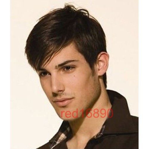 Wig Rambut Palsu Pria Model Lurus Bahan Natural