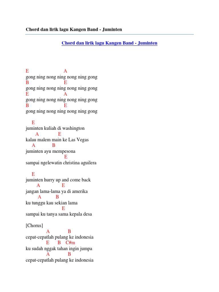 By Derde Wereld Chord Kangen Band Kembali Pulang