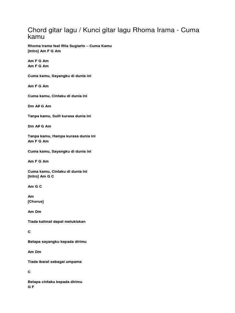 Chord Cuma Kamu By Rhoma Irama Chordlicious
