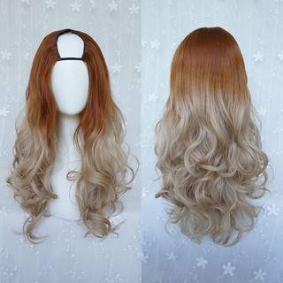 Wig Rambut Palsu Setengah Kepala Wanita Model Panjang Keriting Gelombang Ombre Coklat Madu Pirang