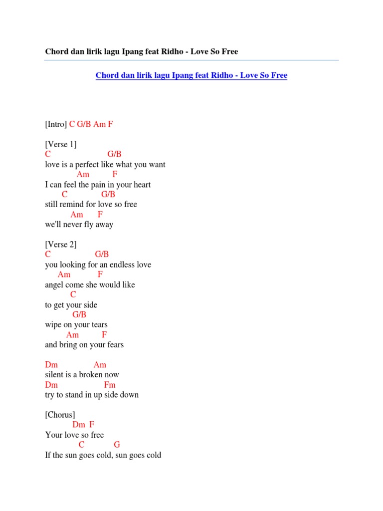 Chord Dan Lirik Lagu Ipang Feat Ridho Love So Free