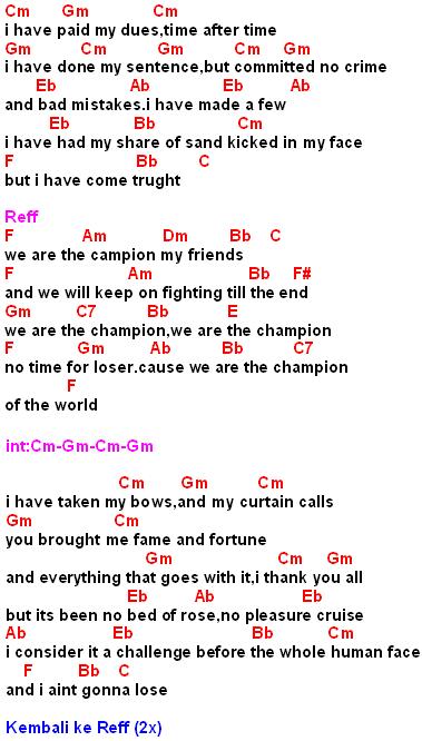 Kunci Gitar We Are The Champions Queen Chord Lirik Dan