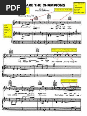 We Are The Champions Piano Score Annotated Song